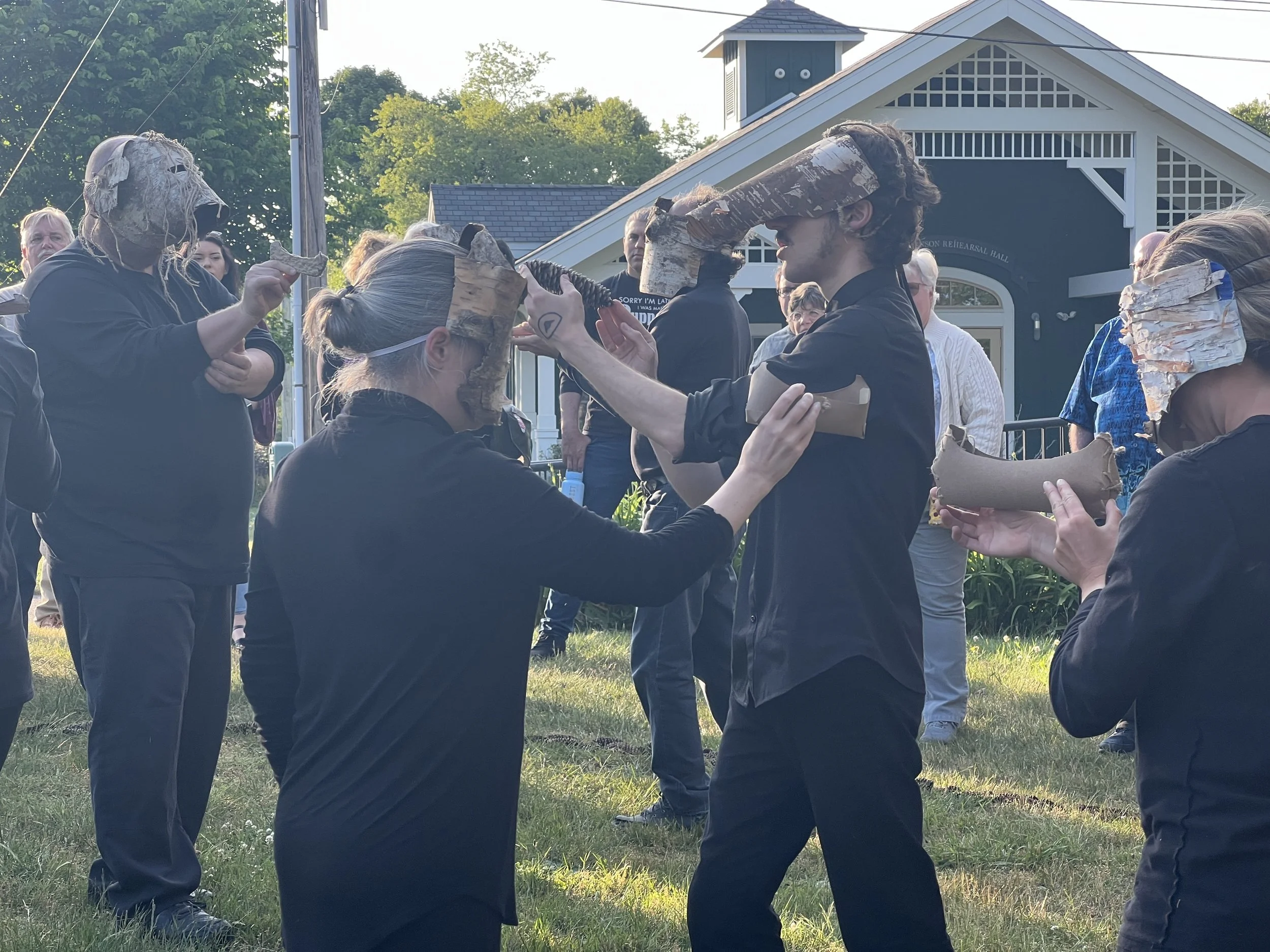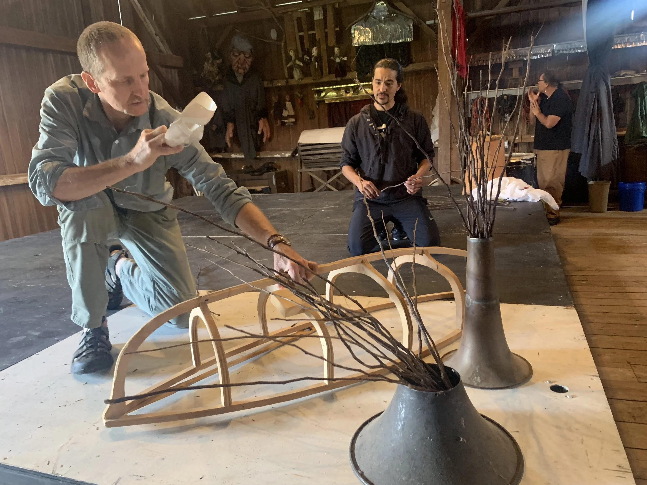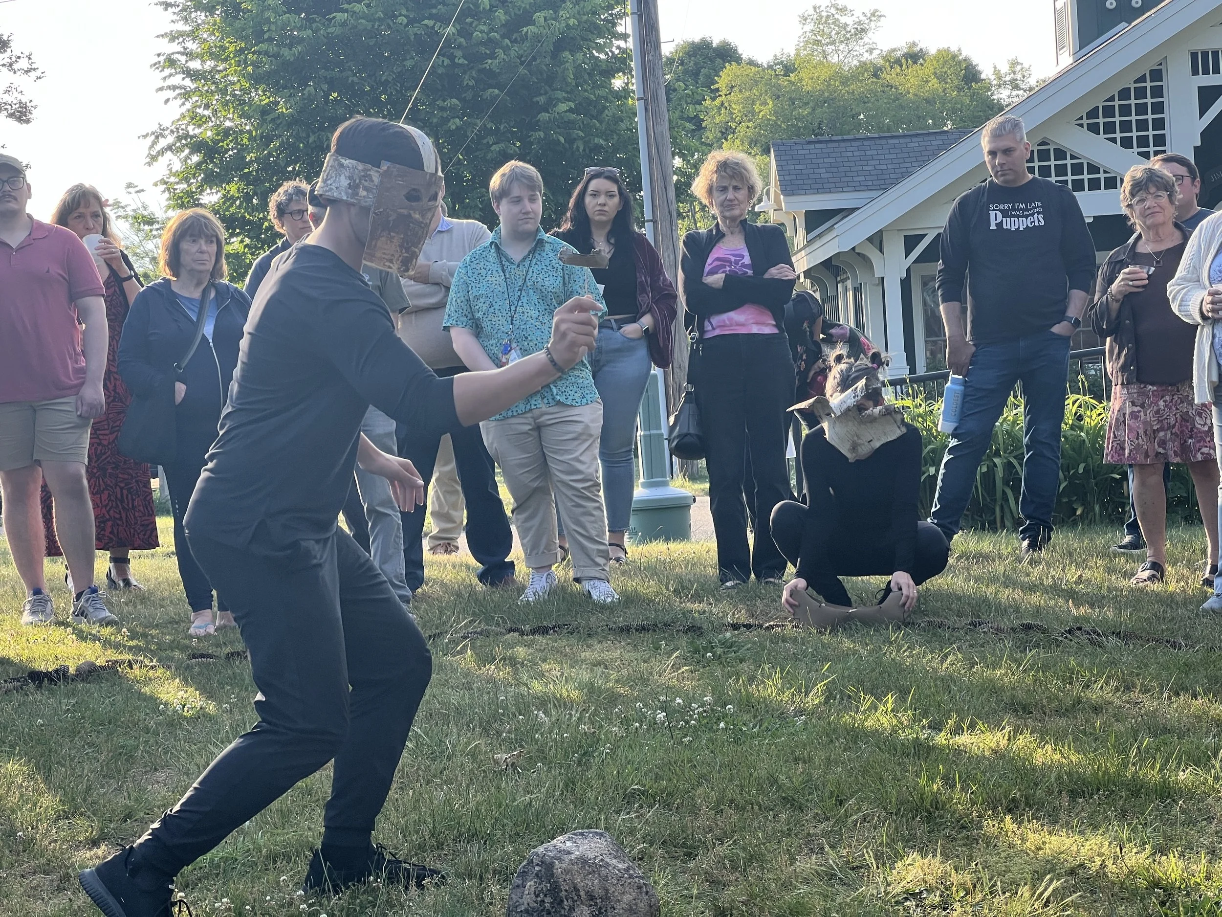 In June 2023, Ty Defoe and Jiimaaan journeyed to Waterford, CT to participate in the National Puppetry Conference at the invitation of Jean Marie Keevins and Pam Arciero. There Ty and his strand worked with natural materials and the beautiful landscape to discover movement. Ty asked participants to bring fishing line, d-rings, wood, snew, and a knife. Special thanks to Ty’s strand: Zac Crofford, Brittaney Talbot, Kristin Horton, Coldin Grundmeyer, Jeremy Black