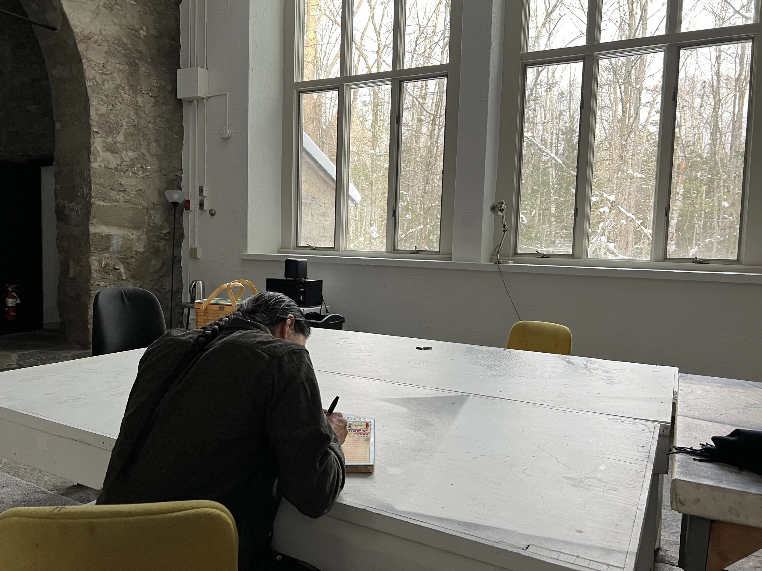 In December 2022, Ty Defoe and Kate Freer journeyed to the MacDowell community in St. Peterborough, New Hampshire for a story, puppet, and projections development residency.